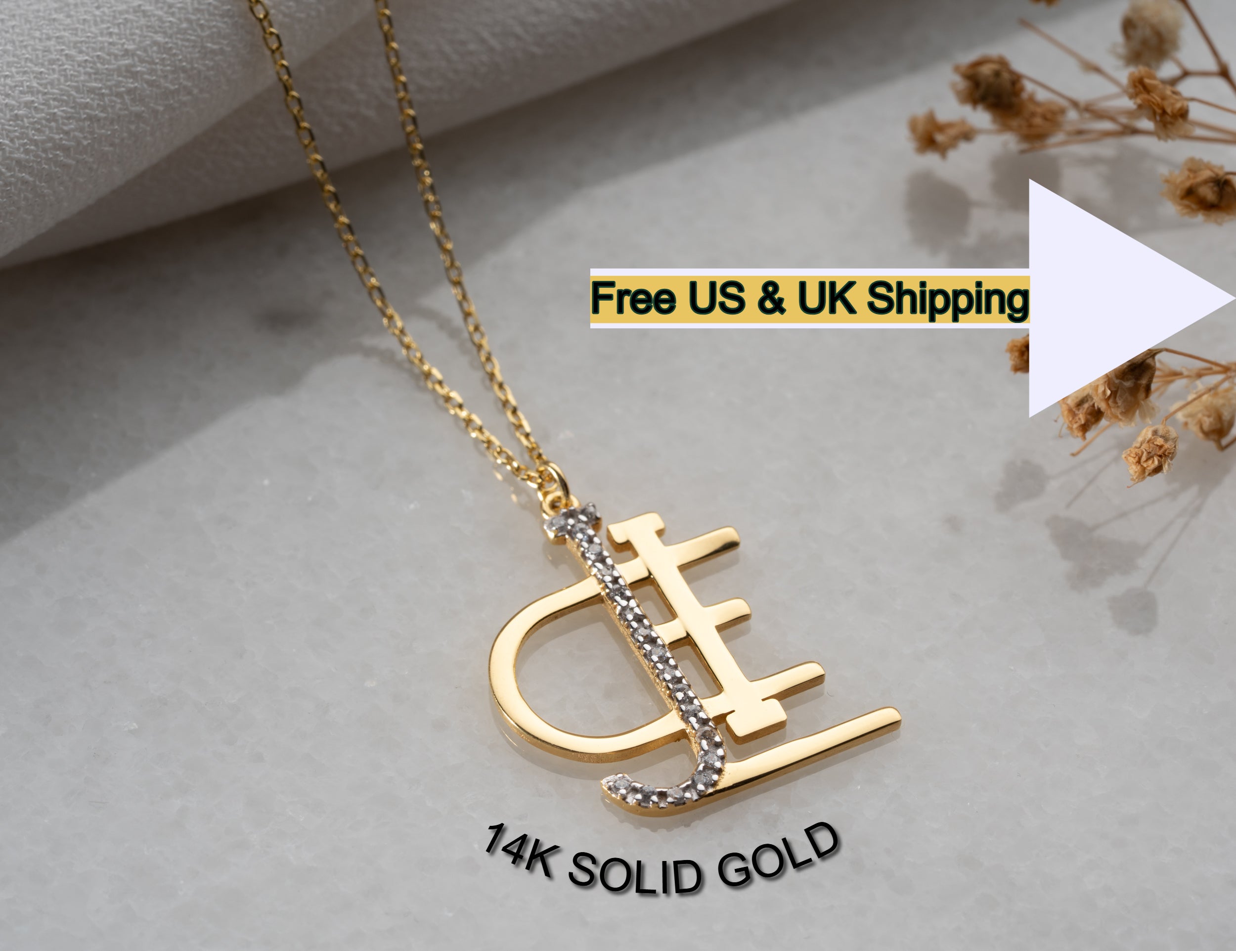 14K Yellow Gold Name Logo Necklace - Personalized Solid Gold Monogram - Diamond Initial Signature Jewelry