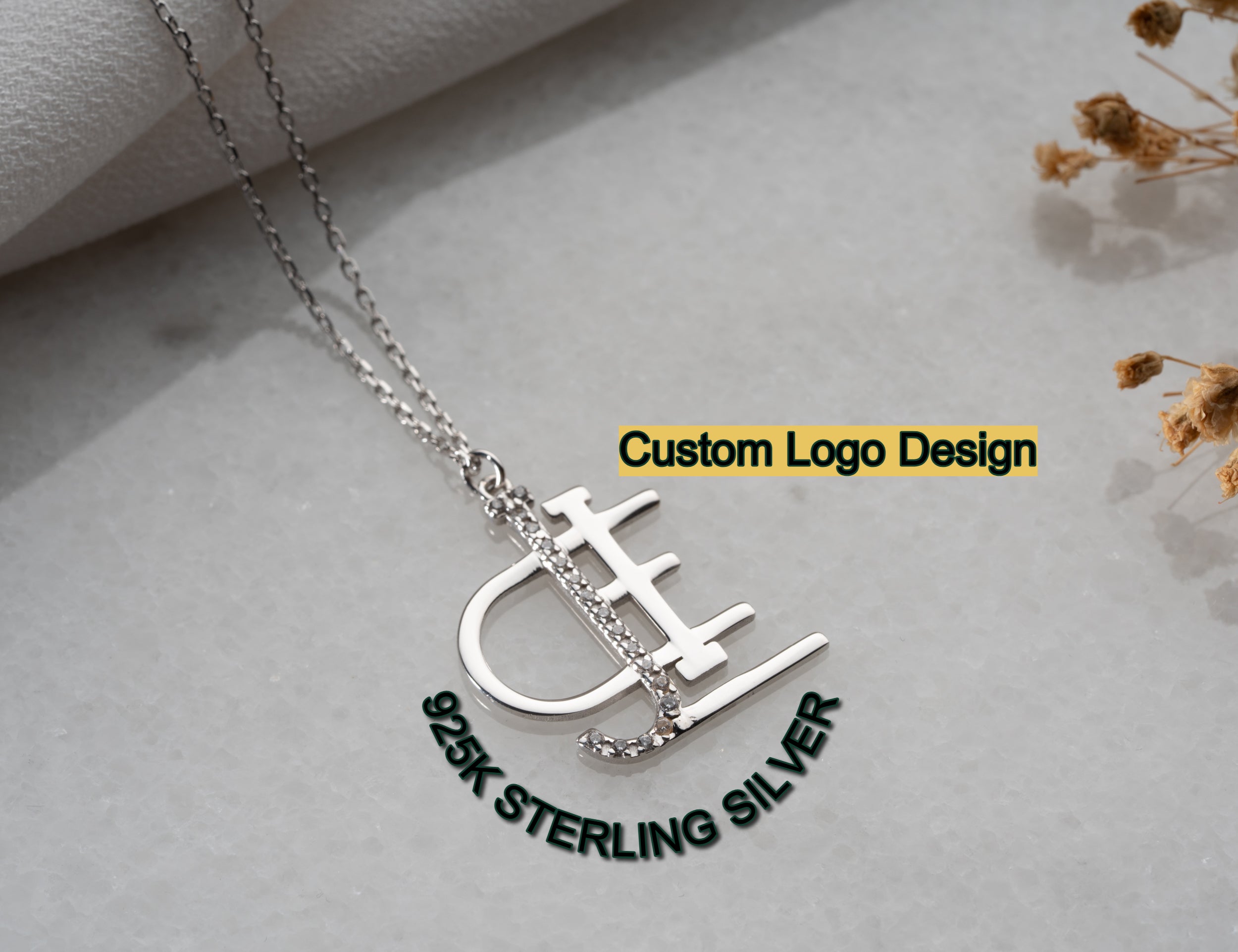 925 Sterling Silver Name Logo Necklace - Custom Geometric Monogram Pendant - Personalized Silver Signature Jewelry
