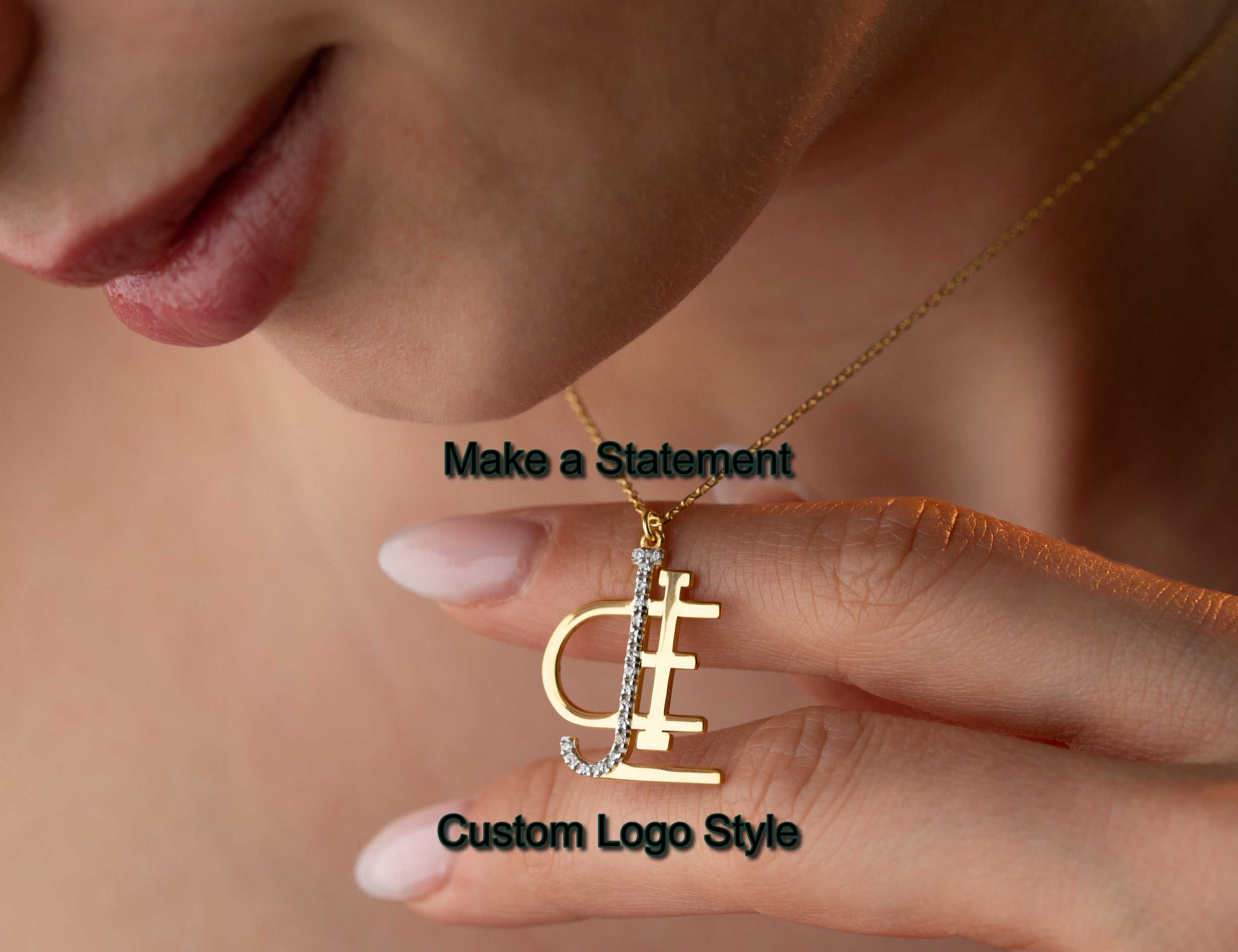 Chic Custom Name Logo Necklace - Elegant Personalized Monogram Pendant - High-Fashion Signature Jewelry