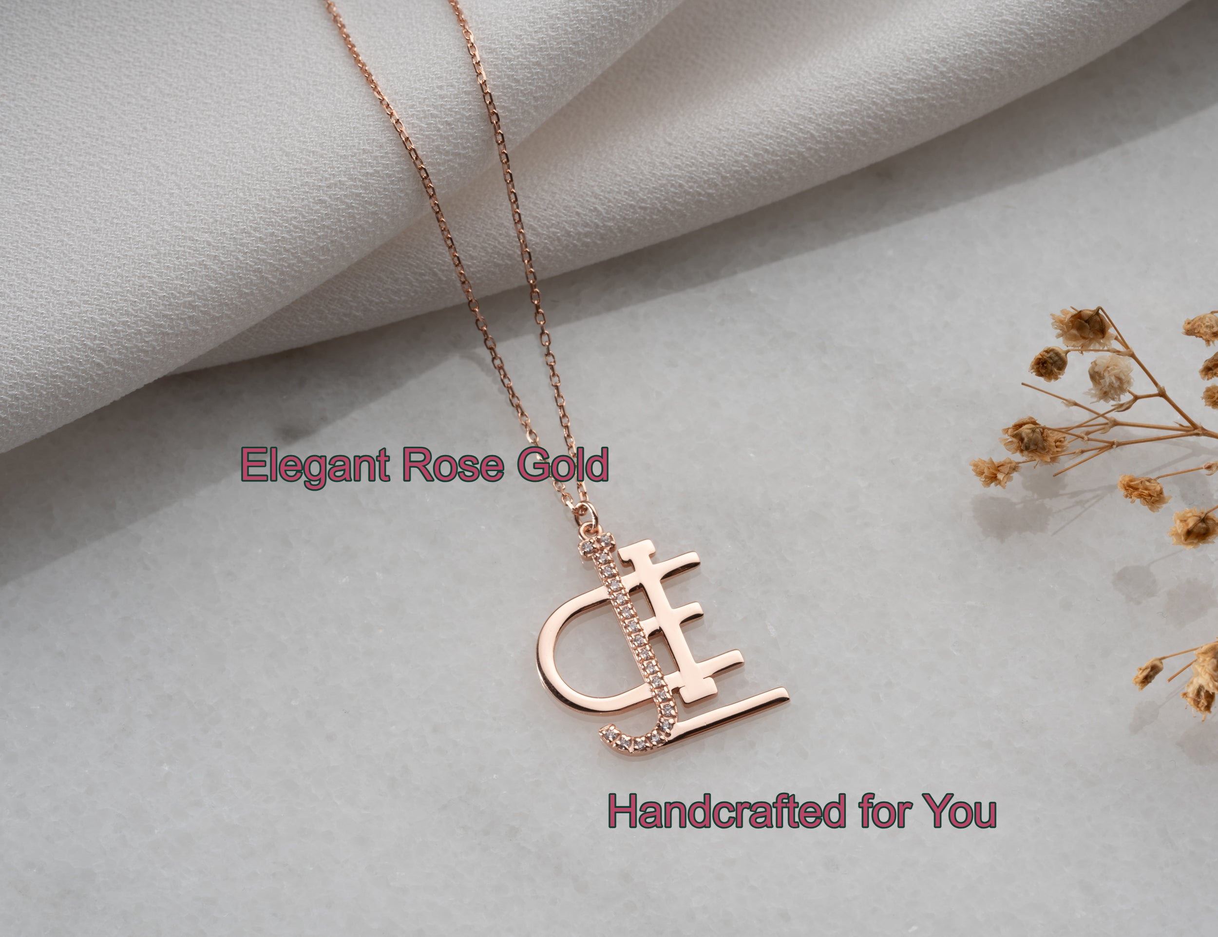 14K Rose Gold Name Logo Necklace - Personalized Romantic Monogram Pendant - Custom Diamond Initial Jewelry