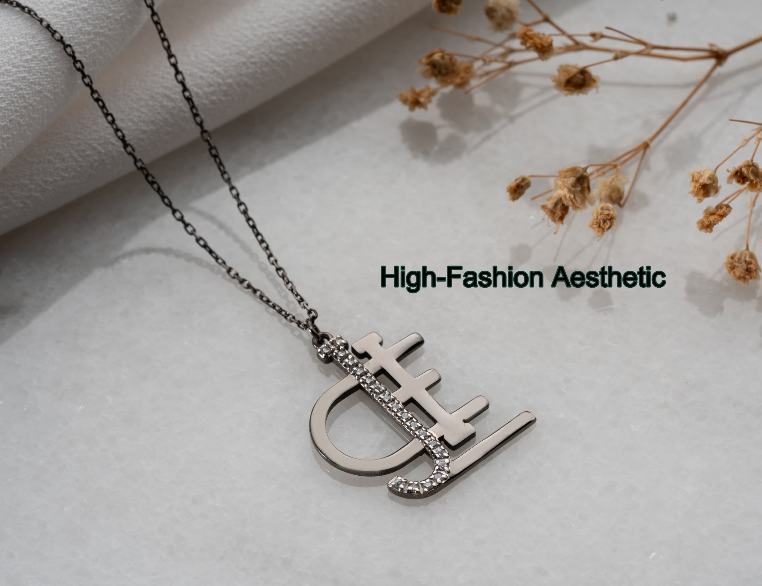 Modern Statement Name Logo Necklace - Bold Custom Architectural Pendant - Designer Monogram Jewelry
