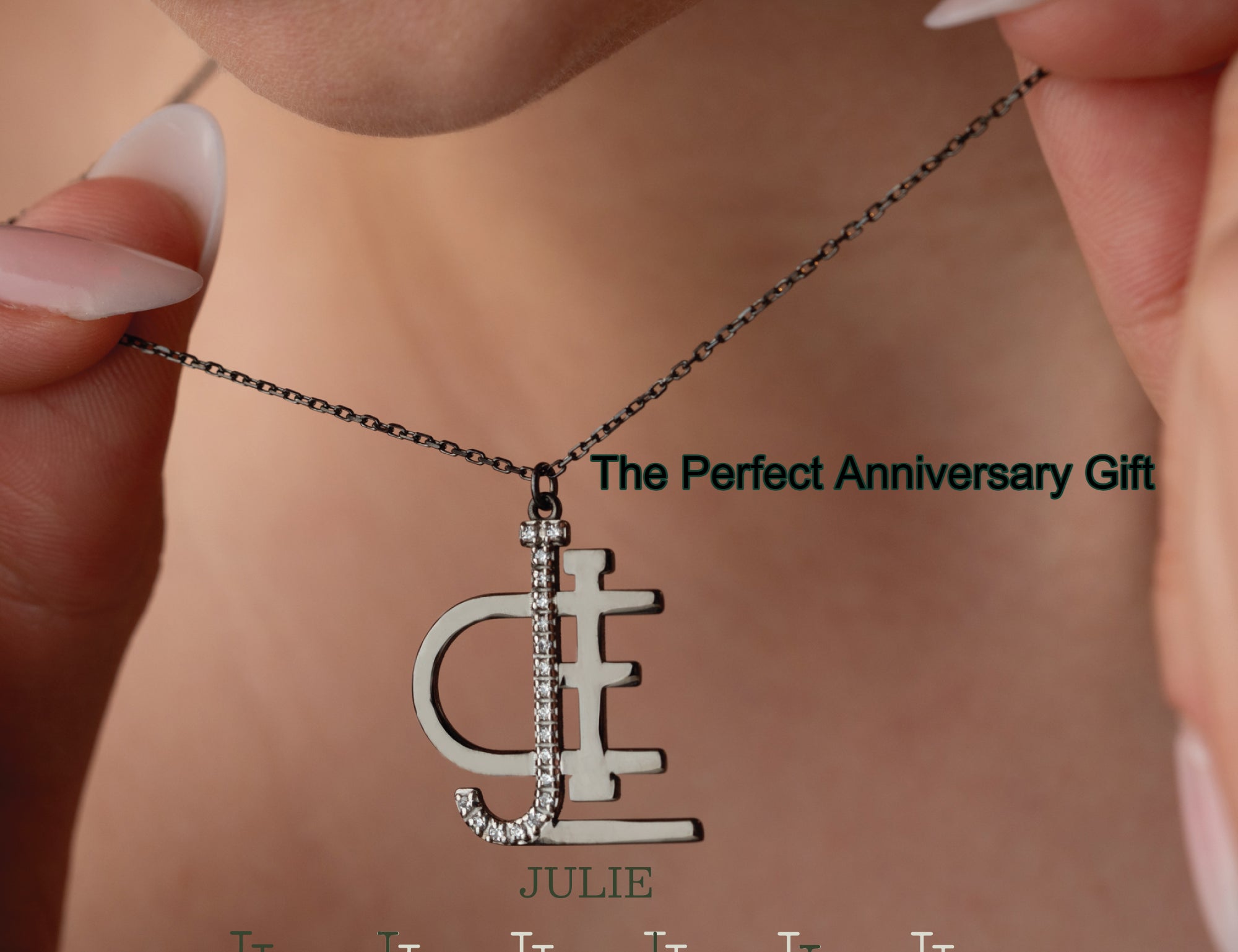 Anthracite Diamond Initial Necklace – Custom Name Jewelry in Exclusive Black Finish