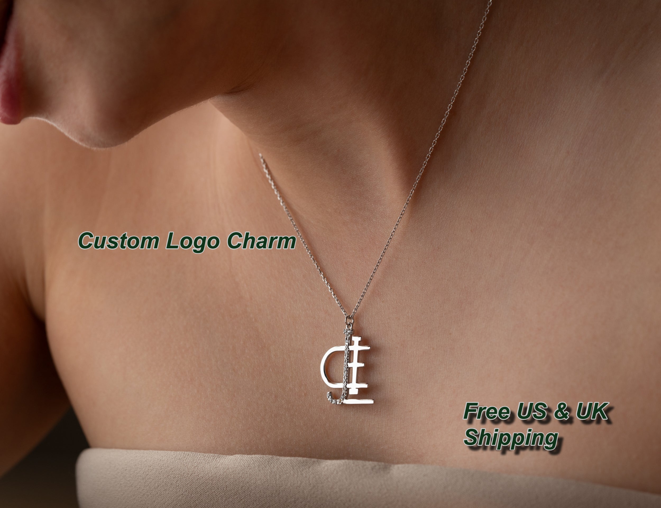 Personalized Name Logo Charm Necklace - Custom Initial Monogram Pendant - Unique Diamond Initial Jewelry