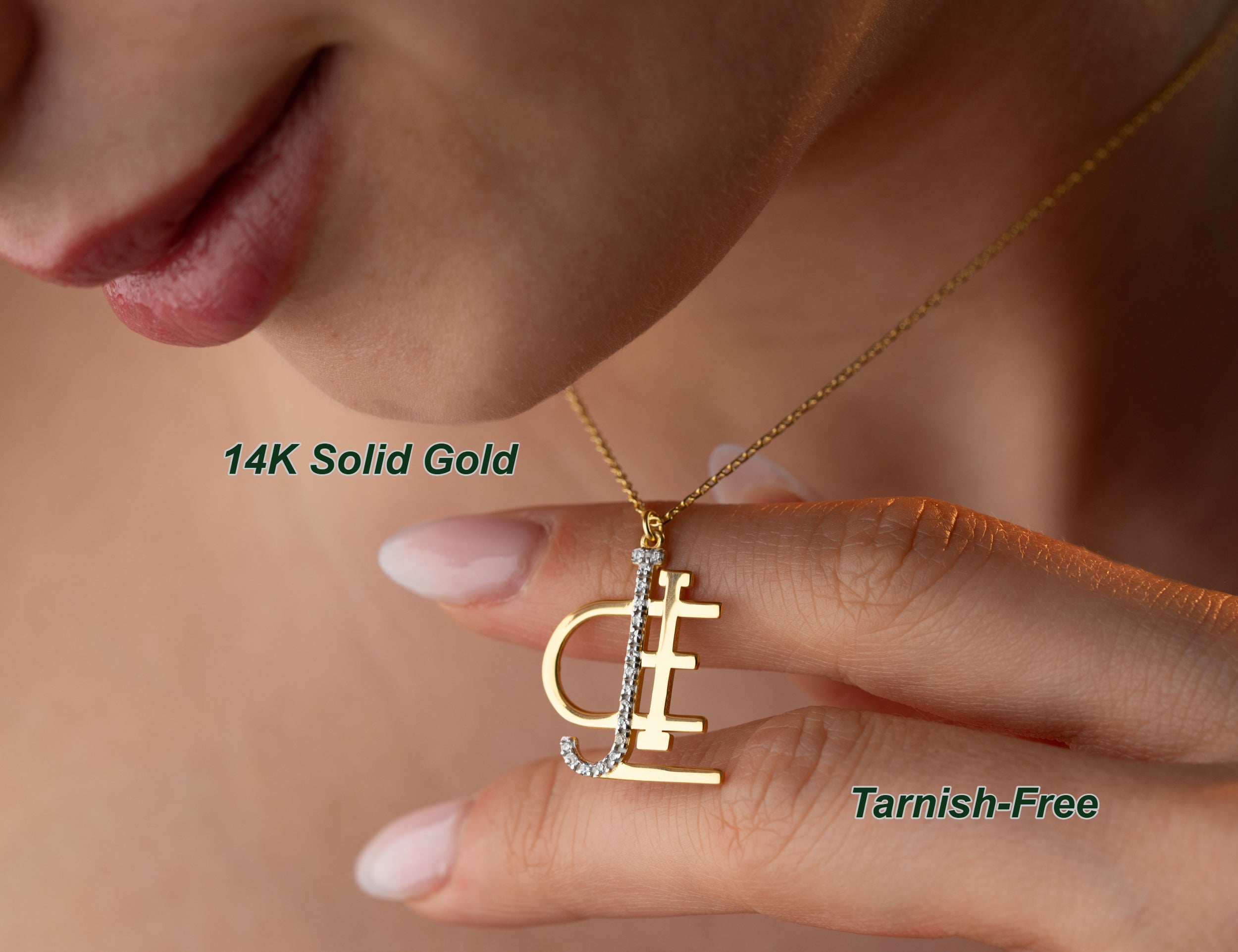 Tarnish-Free 14K Solid Gold Name Logo Necklace - Real Gold Personalized Jewelry - Waterproof Custom Monogram