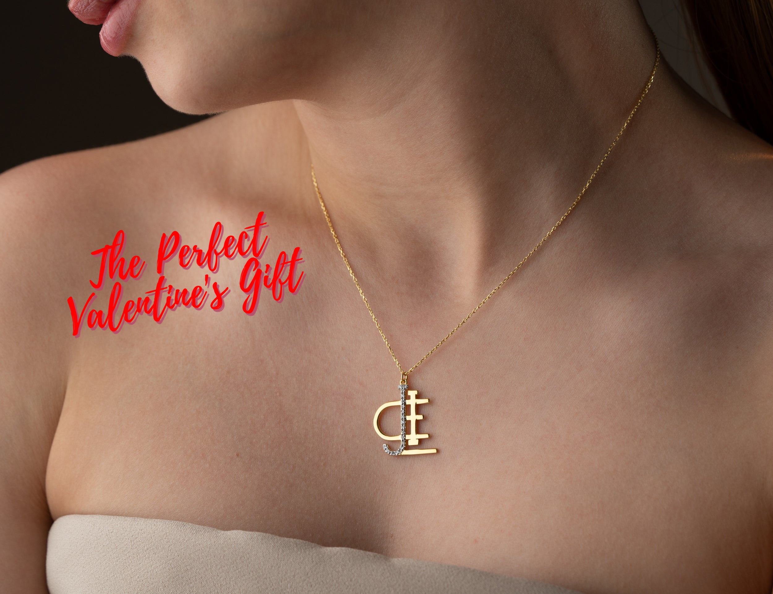 Valentine's Day Custom Name Logo Necklace - Romantic Personalized Gift for Her - 14K Gold Designer Monogram