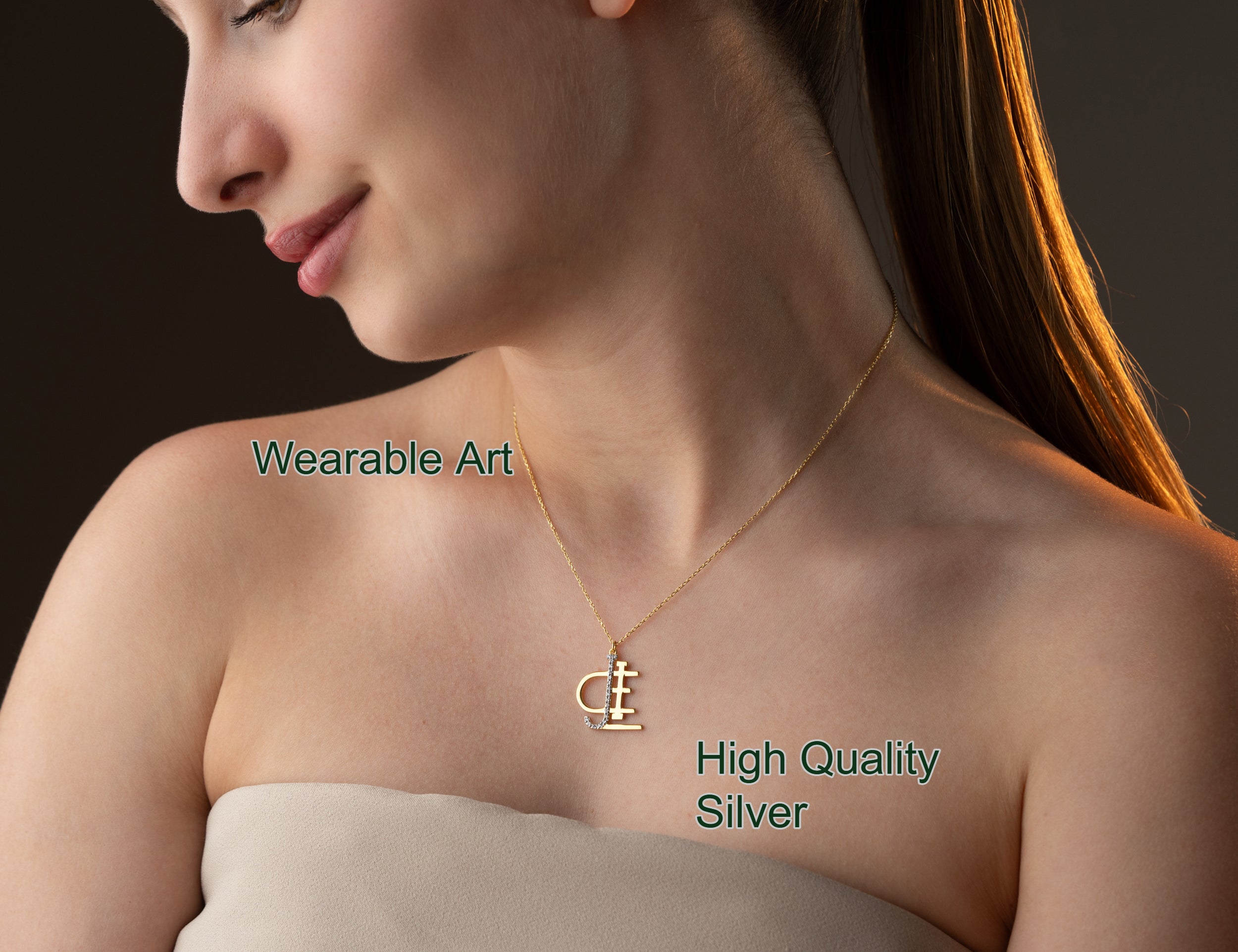 Custom Signature Name Logo Necklace - Personalized Identity Pendant - Designer Architectural Jewelry