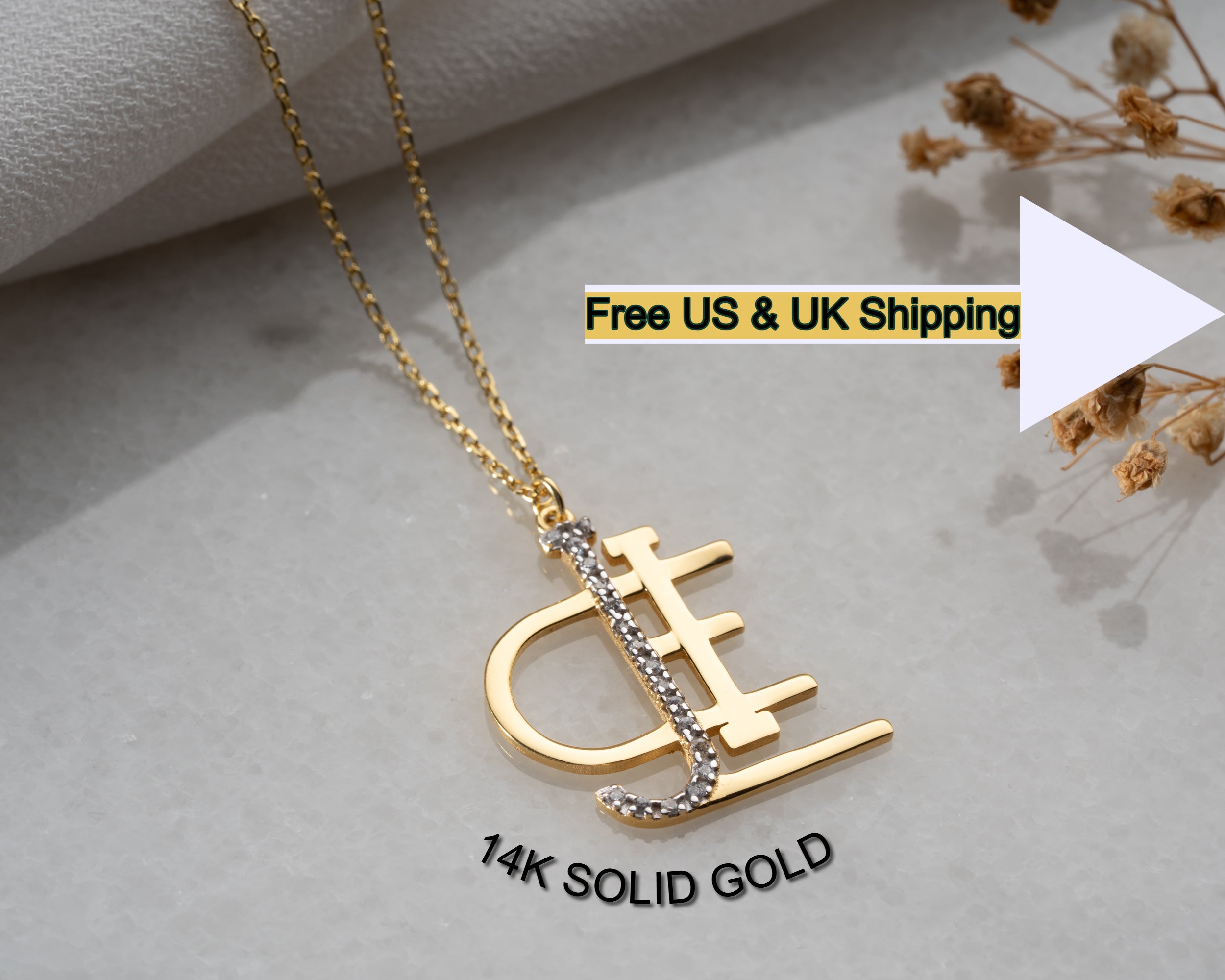 14K Yellow Gold Name Logo Necklace - Personalized Solid Gold Monogram - Diamond Initial Signature Jewelry